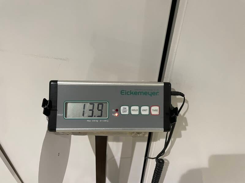 Paco stapt elke maand met opgeheven kop de dierenarts binnen — niet voor prikken of pillen, maar voor zijn vaste moment op de weegschaal.