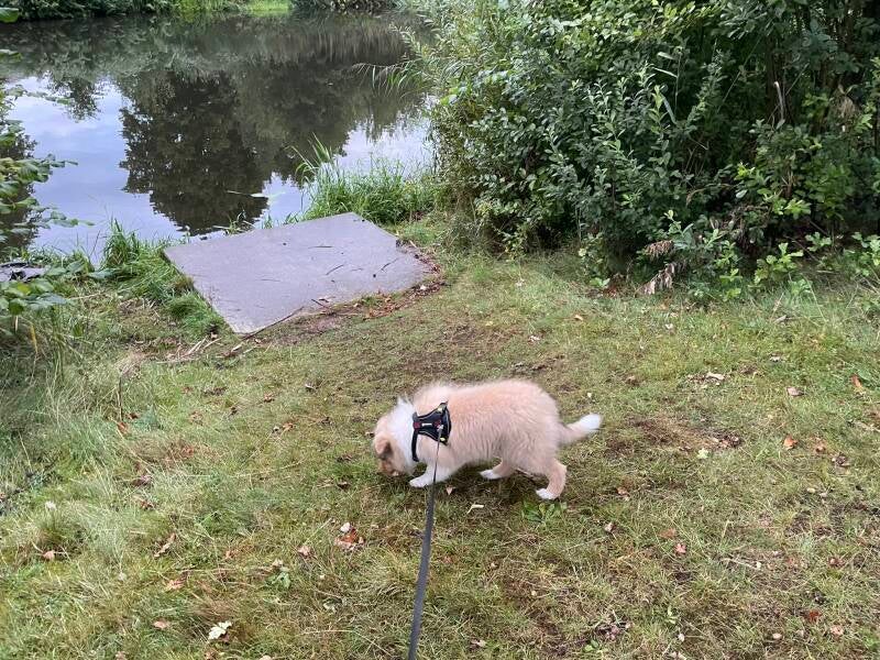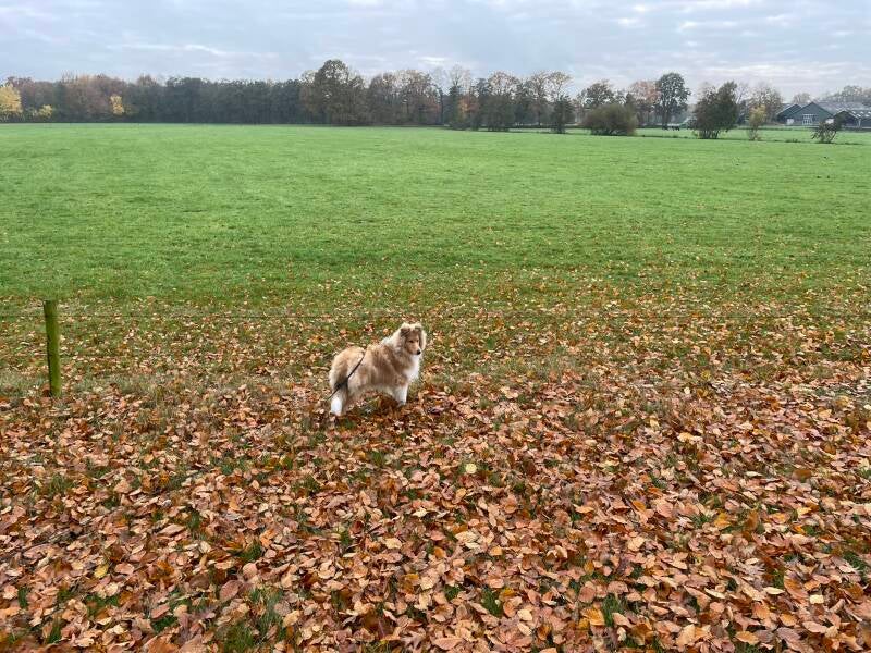 Wandelen met Paco was vanaf dag één een mini‑expeditie. Elk blaadje dat bewoog, elke vogel die vloog, elke geur die voorbij waaide — Paco registreerde het. Zijn staart omhoog, oren gespitst, klaar om in actie te komen.