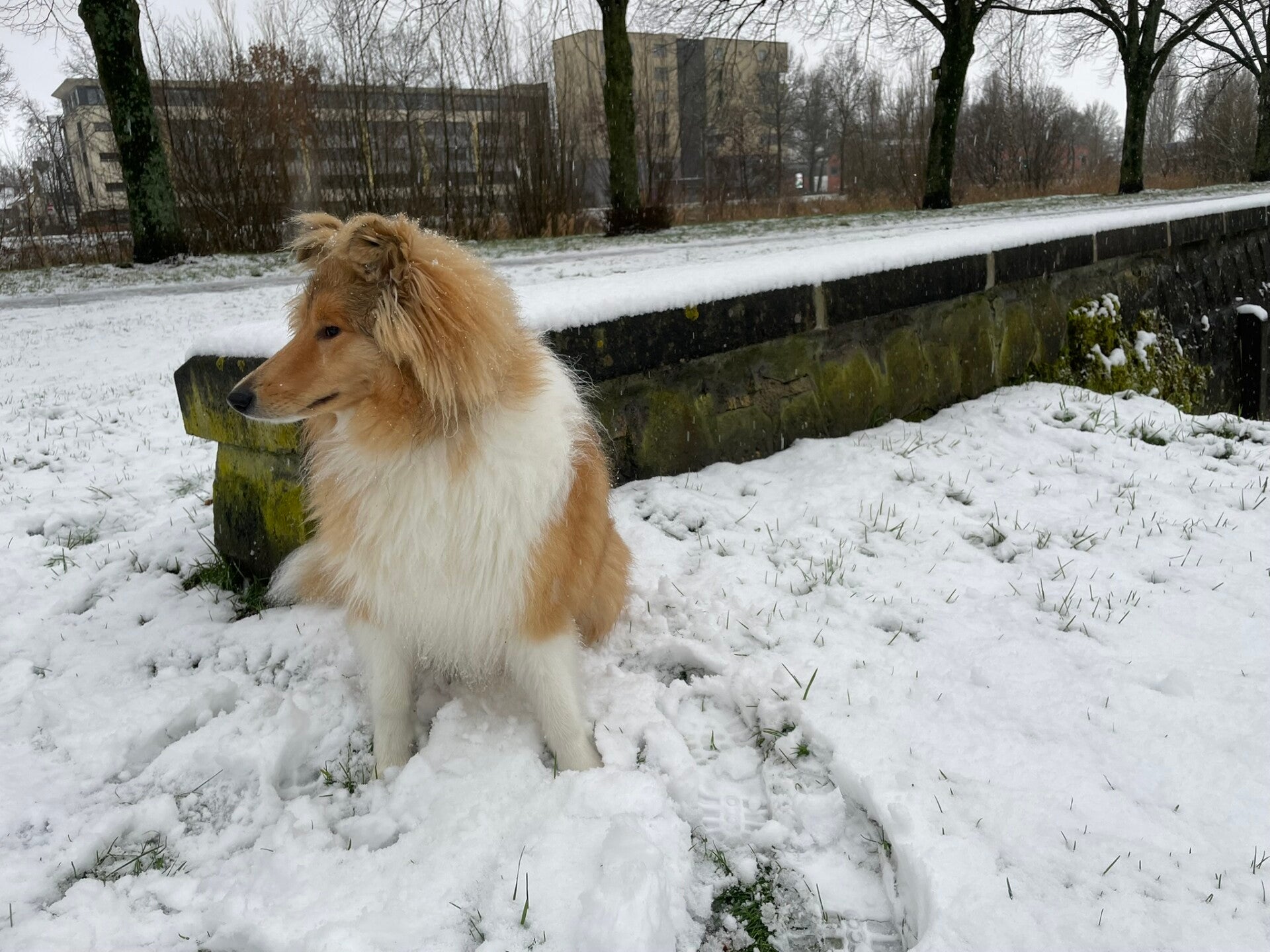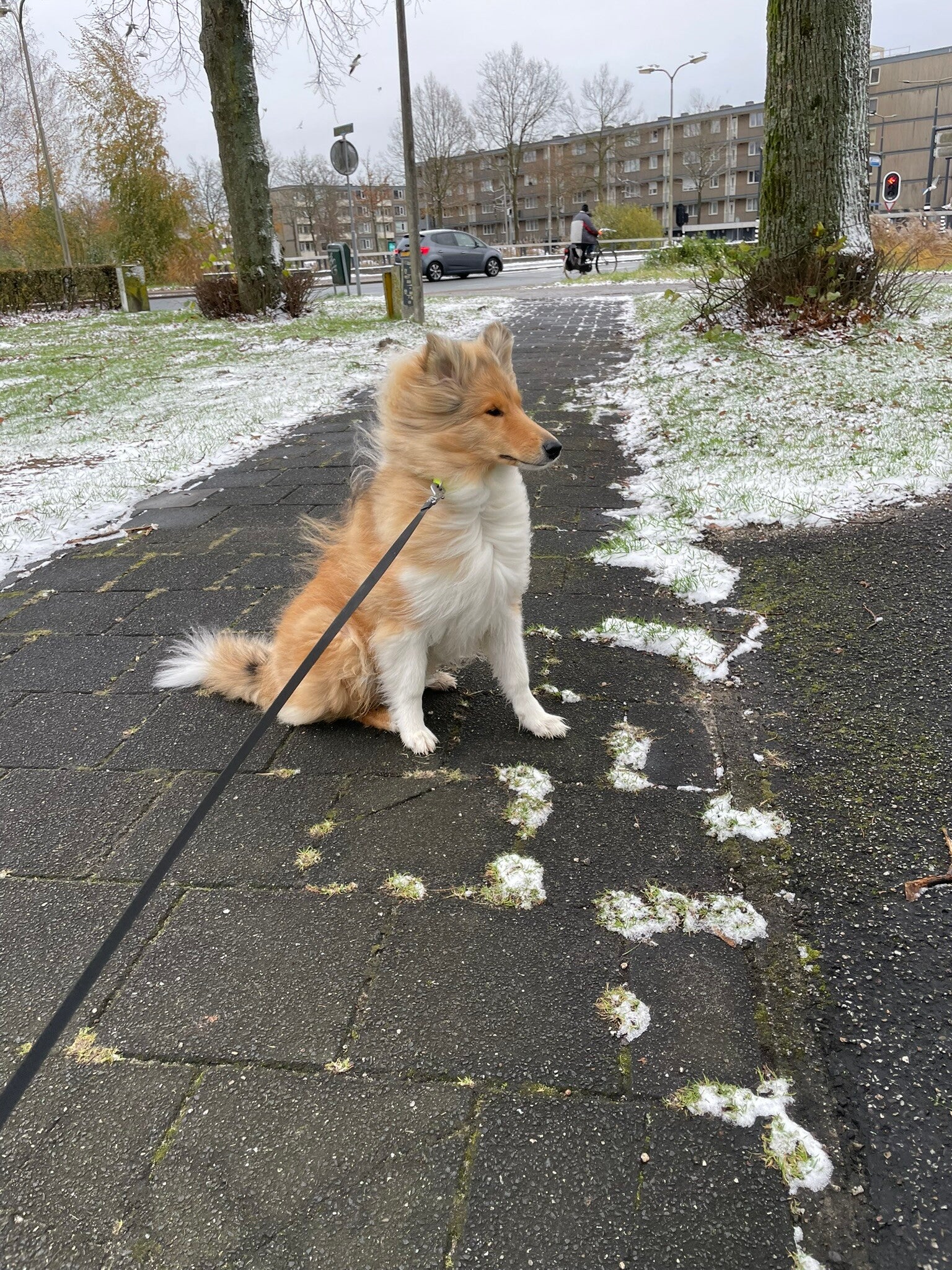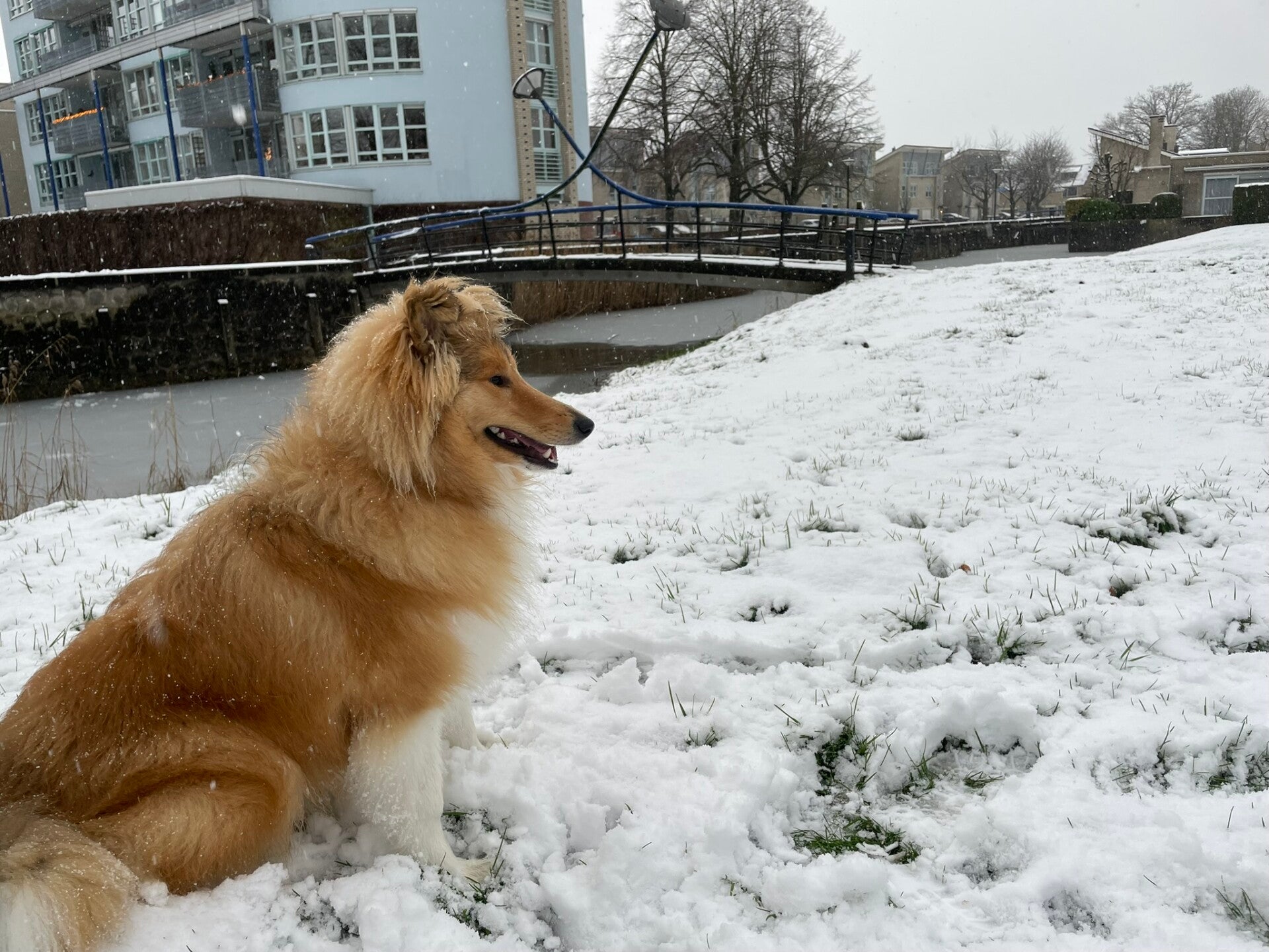 Vanochtend werd de wereld stil. De stad lag onder een zachte, witte deken en de lucht rook naar belofte. Voor Paco, onze trouwe Schotse Collie met zijn gouden manen en nieuwsgierige blik, was dit geen gewone ochtend. Dit was zijn allereerste ontmoeting met échte sneeuw.
